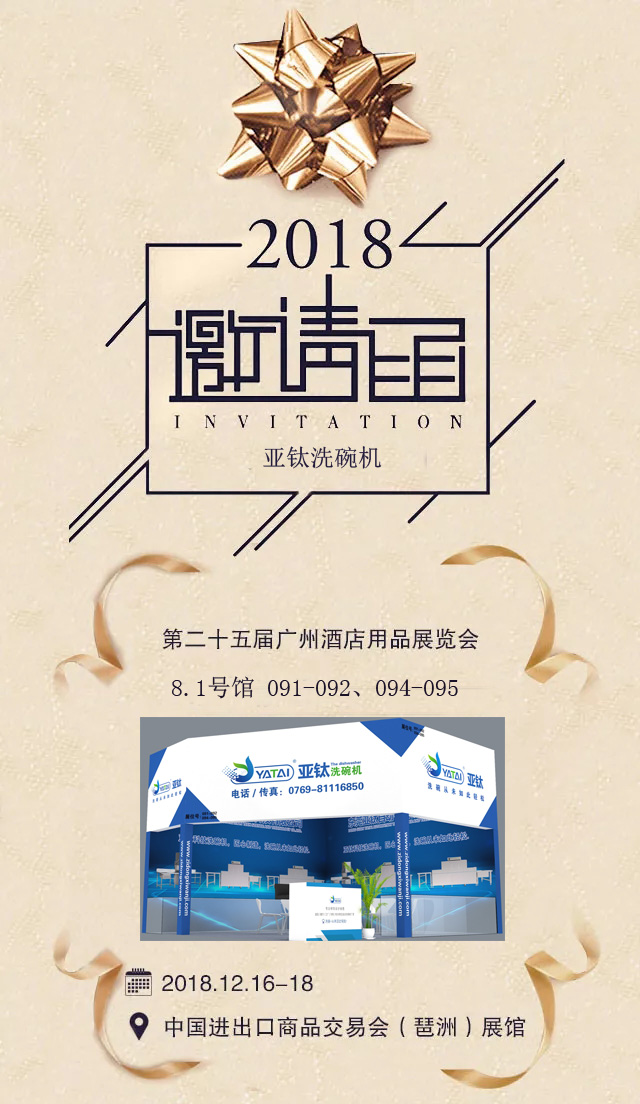 借此 亞鈦洗碗機 將展出公司的一系列全新商用洗碗機,并面向全國招商,歡迎各位新老客戶前來參觀,和我們交流意見,洽談合作。
