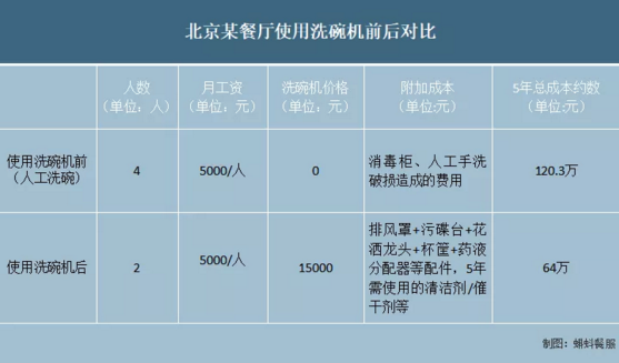 受用工荒、人工成本增加等因素影響,人工洗碗成本越發(fā)高漲。餐廳要盈利,改革迫在眉睫。