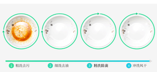使用洗碗機可以達到100%清潔覆蓋面,清洗效果遠遠高于人工清洗。