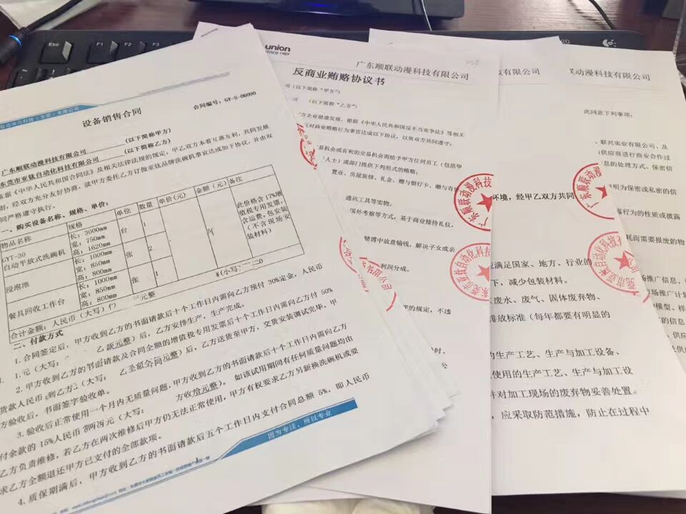 廣東順聯(lián)動漫使用亞鈦食堂洗碗機GYT-60已經(jīng)滿一年了,前陣子特意回訪廣東順聯(lián)動漫食堂負責人黃總,黃總對亞鈦洗碗機非常滿意,特別對洗碗機的清洗效果和速度給予高度評價,后來希望對洗碗機的改進提了幾點建議,其建議我們也在后進改進中會重點注意,希望洗碗機能越來越好的服務客戶。為此祝廣東順聯(lián)動漫生意興隆。