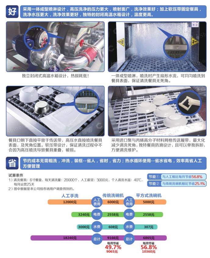 第二:是洗碗機浪費水電的問題,大多數(shù)人認(rèn)為用洗碗機洗更費電費水,但是國家家用電器質(zhì)量監(jiān)督檢驗中心曾組織了一場用洗碗機洗碗以及人工洗碗的耗用水電對比實驗,兩組分別清洗76件污染程度、大小一樣的餐具,比較用水量、用電