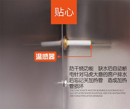 6. 防干燒功能,缺水后自動(dòng)斷電針對(duì)馬虎大意客戶排水后忘記關(guān)加熱管造成加熱管損壞。